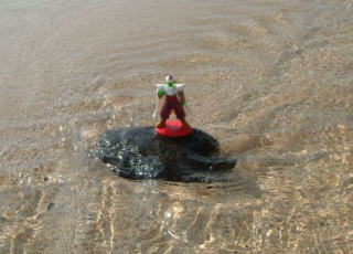 星人が砂の中で遭難してましたー。